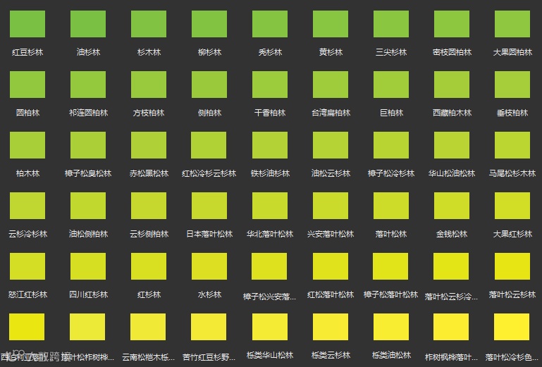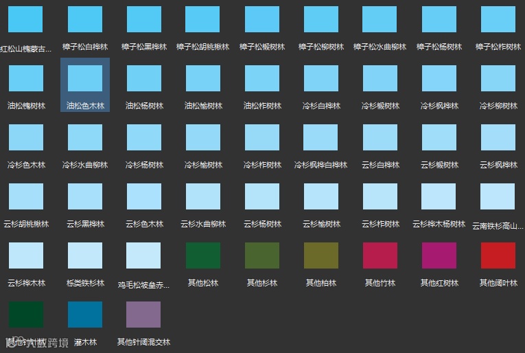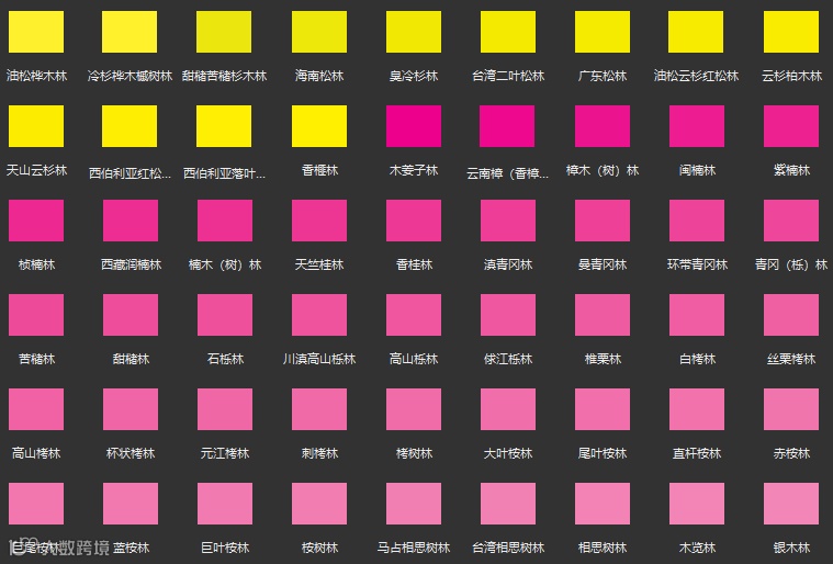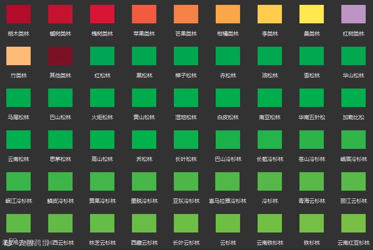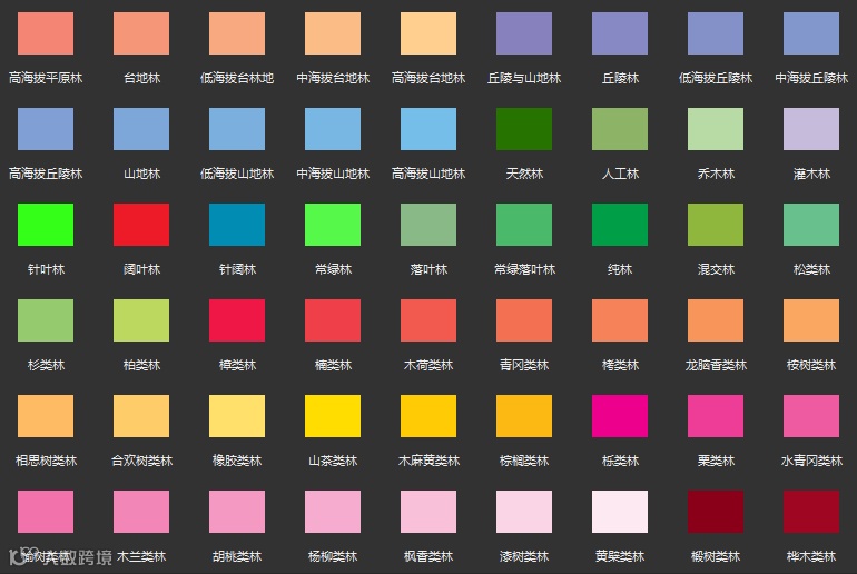 提供多种森林与植被类型图例符号,适用于林业资源调查与生态规划。