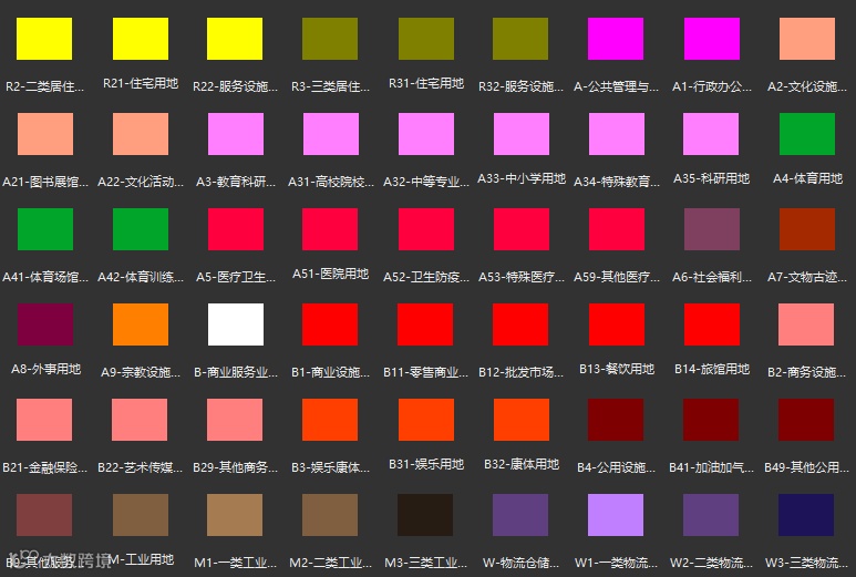涵盖教育、交通等城市用地类型符号,符合城市用地分类与规划建设标准。