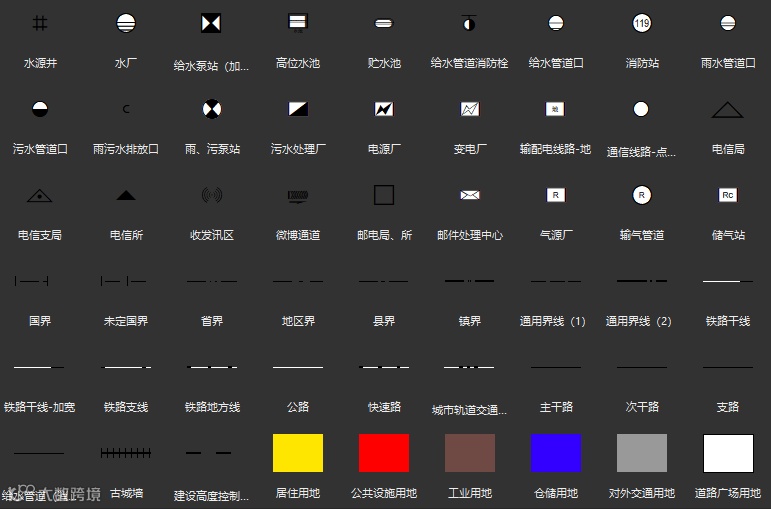 包含城市基础设施与功能区位符号,支持城市总体规划与专项规划制图。