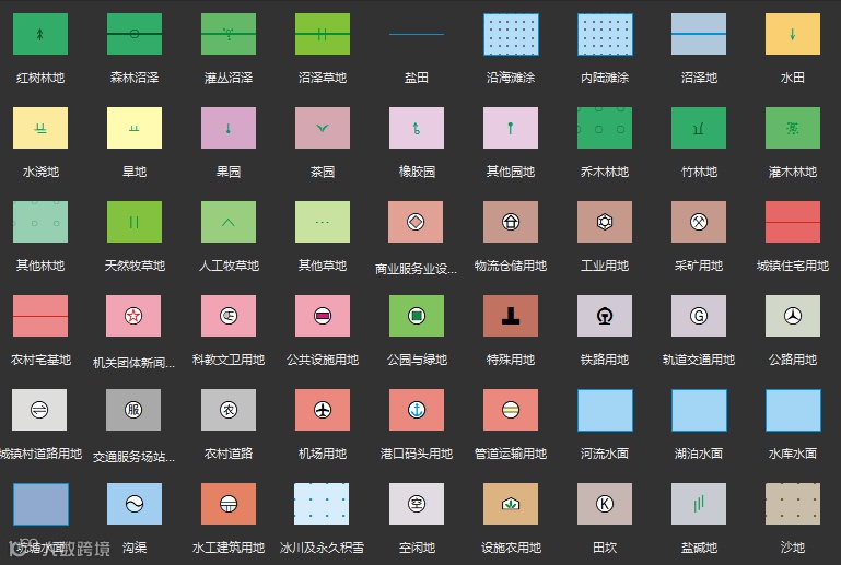 包含各类地类、道路及界限符号,适用于第三次全国国土调查相关制图任务。