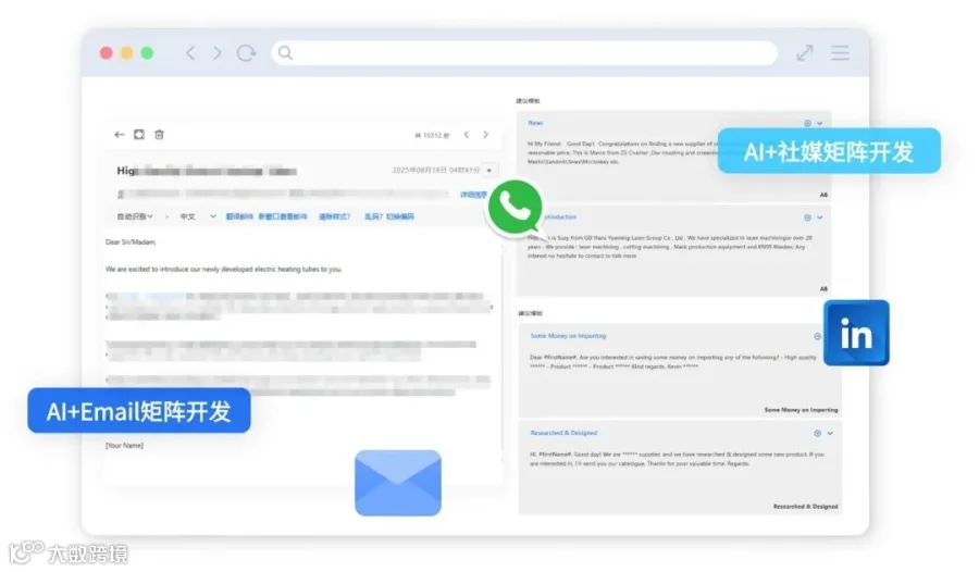 - AI+Email开发:结合客户背调数据生成个性化开发信,嵌入采购偏好、历史需求等“钩子”,送达率超90%;