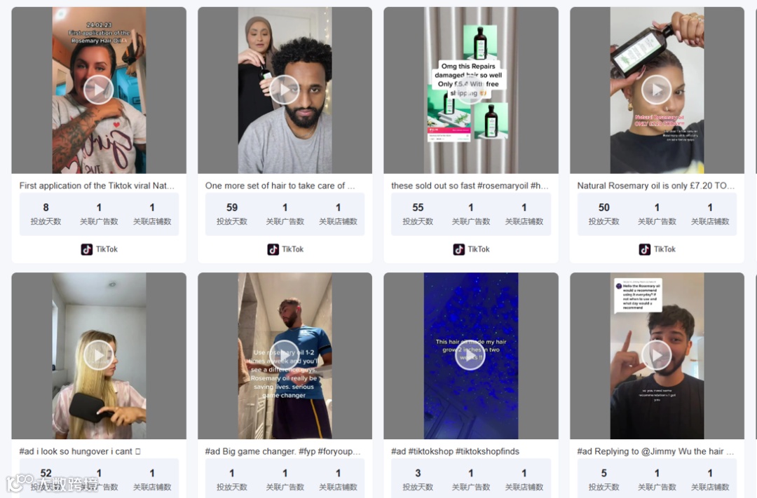 据 GoodsFox 数据显示,该款产品在 TikTok 上也有一定的广告投放表现,使用的创意素材数达到609条。从内容上看,这些素材主要通过展示产品使用前和使用后的效果对比,来增加产品的吸引力,刺激用户下单。