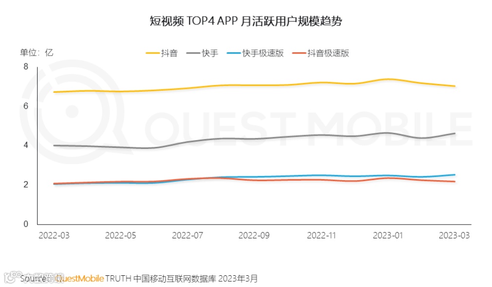 目前,短视频头部APP月活跃用户规模逐渐趋于稳定。从日均活跃人数看,抖音流量比快手稍好。有一组数据显示,抖音的日均活跃用户数超过了4亿,快手日均活跃用户数超过了3亿。