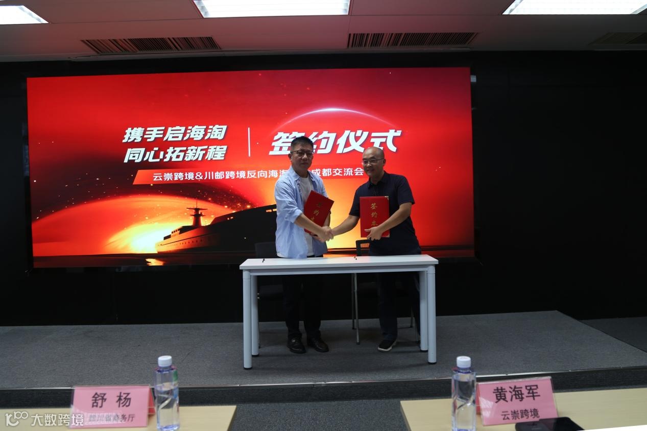 云崇跨境创始人黄海军(Jerry)与徐昆总经理代表双方签署协议,宣布将围绕“运营+物流”双核心,整合各自资源优势,共同助力四川反向海淘产业带出海,为企业提供全链路的高效服务。