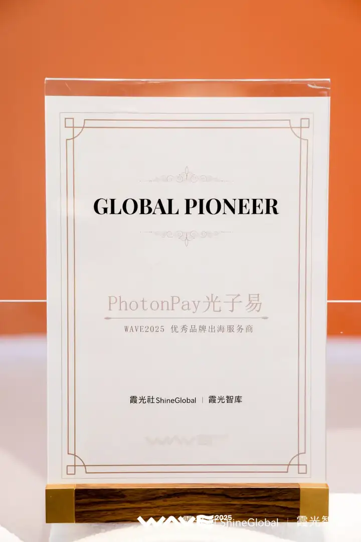 近日,PhotonPay光子易凭借在跨境支付领域的卓越表现,成功入选“WAVE2025 品牌领航者榜单”,一举斩获 “WAVE2025 优秀品牌出海服务商” 大奖。