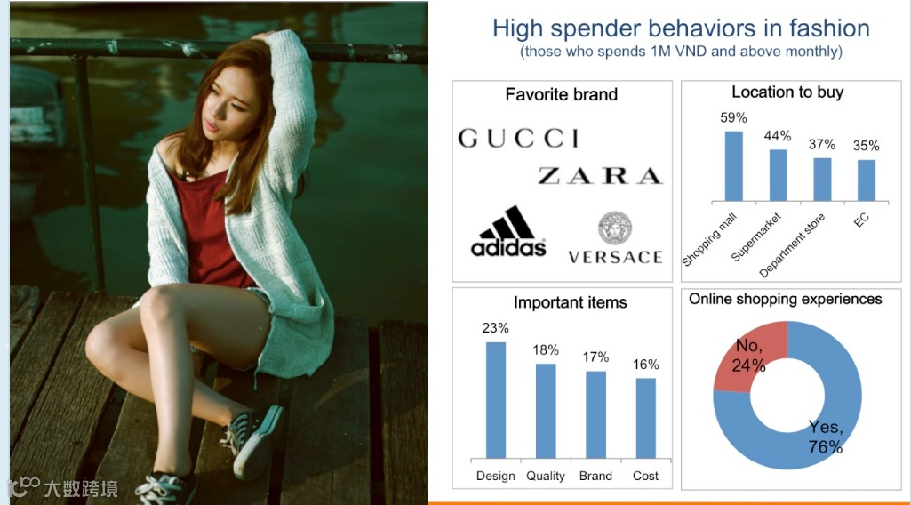 虽然目前越南只有41%的人网购时尚服装,但在顶级时尚消费者中,网购的比例高达76%,并且他们更倾向于在海外购买商品。