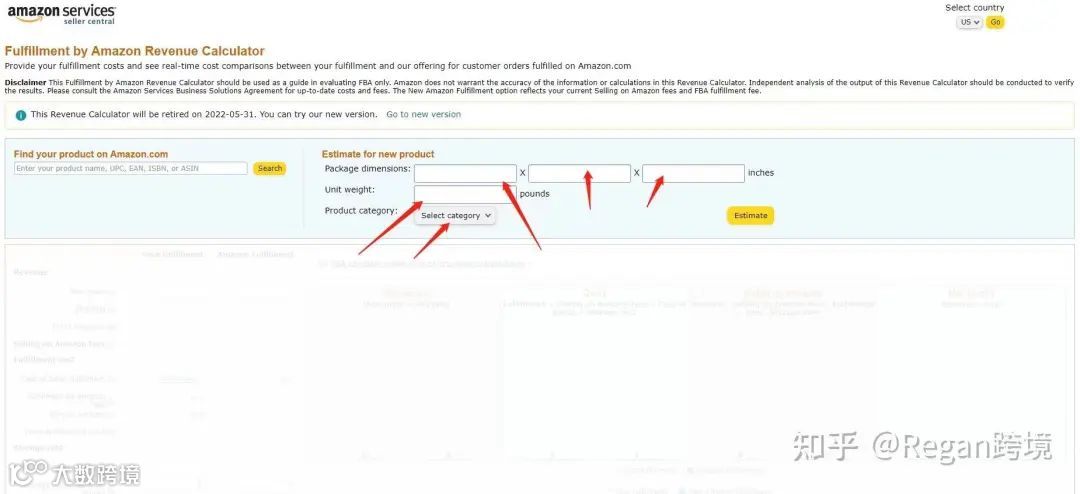 进入后台之后,我们在这里输入产品的长宽高还有重量,再选择我们要做的类目,可以直接得出来我们的产品配送费用是多少。注意填写的长宽高和重量是以英寸和磅为单位。
