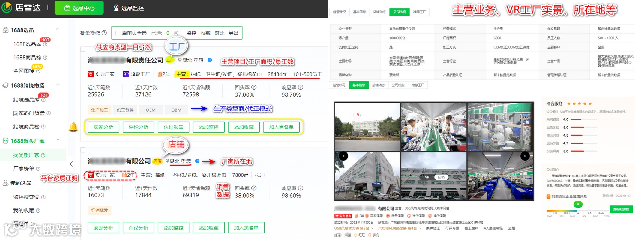 天猫和Lazada一键打通后,测款成本更低,速度更快。用店雷达找1688源头厂家以及厂家榜单,深度挖掘1688上潜力工厂和新品,建立稳定的合作关系,进行“小批量、多频次”的测款。甚至可以合作开发独家款式,构建自己的产品壁垒,以此有望在东南亚市场获得更多订单。