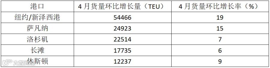 根据Descartes数据(基于海关申报,不同于官方港口计数),有几个港口在4月出现了大幅度的月度进口增长。