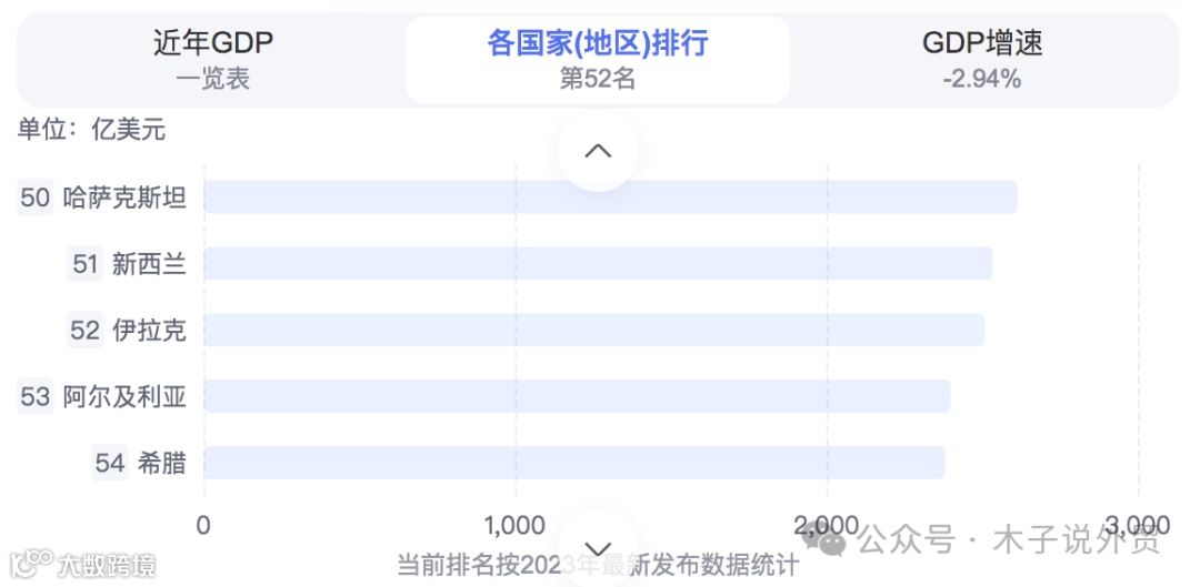 根据公开数据,伊拉克2024年GDP为2658.94亿美元,在阿拉伯国家中排名第5,全球排名第52位。石油工业是其国民经济命脉,占国内生产总值的60%,财政收入的90%和外汇收入的96%。