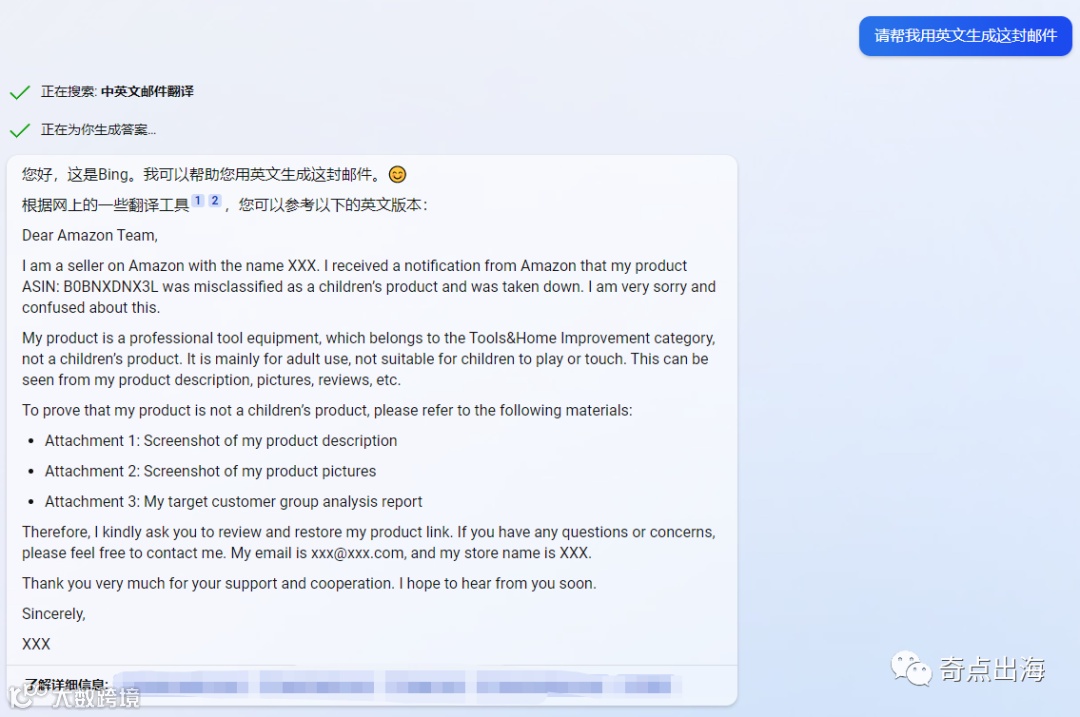 他本来是打算来奇点出海找申诉信模板的,但突然想起最近在网上有很多卖家分享用人工智能解决运营中的各种问题,所以他决定也试一试,看看是否真的如此神奇。结果让他十分惊喜,于是他马不停蹄分享给了橙子。