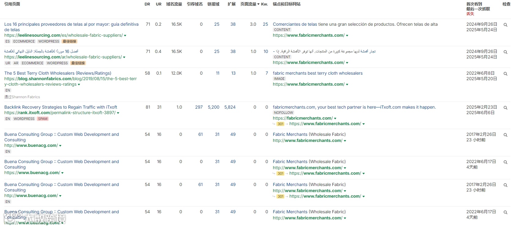 此外,Fabric Merchants并未局限于英文市场,而是同步布局了西班牙语、阿拉伯语等多语言外链资源,通过多语言SEO覆盖拉美、中东等市场,实现国际采购流量的多点渗透。这种在语言维度上的本地化优化,能够有效提升不同市场用户的信任感与转化意愿。