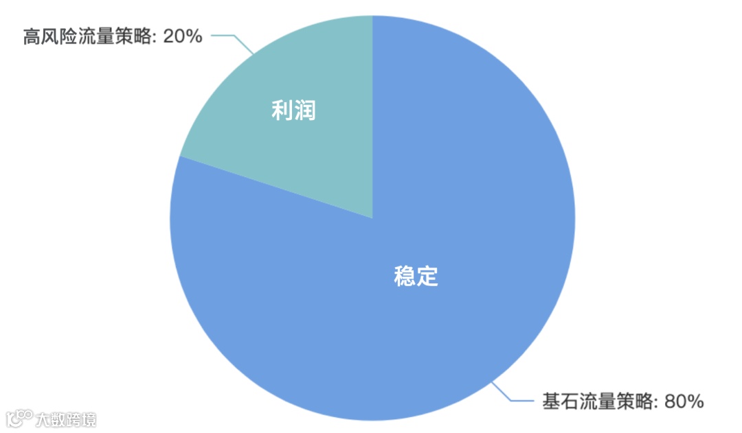 基石流量策略占据我们精力的20%,而高风险流量策略占据我们精力的80%。