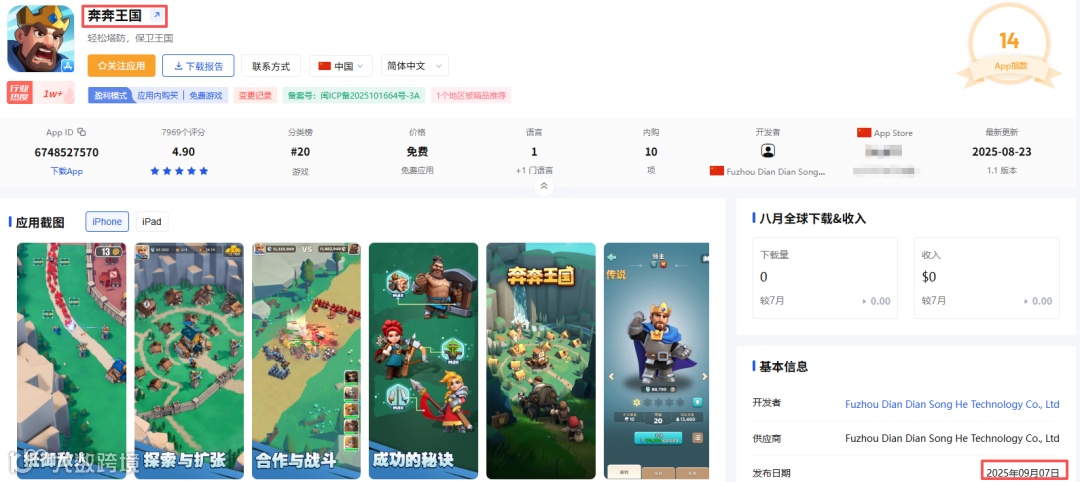 而就在微信小游戏端上线后的第11天,也就是9月7日,《奔奔王国》在前后没有任何公告的情况下“悄然”上线了APP端(小游戏和APP确认实现了数据互通),次日便冲进了iOS游戏免费榜第16名。