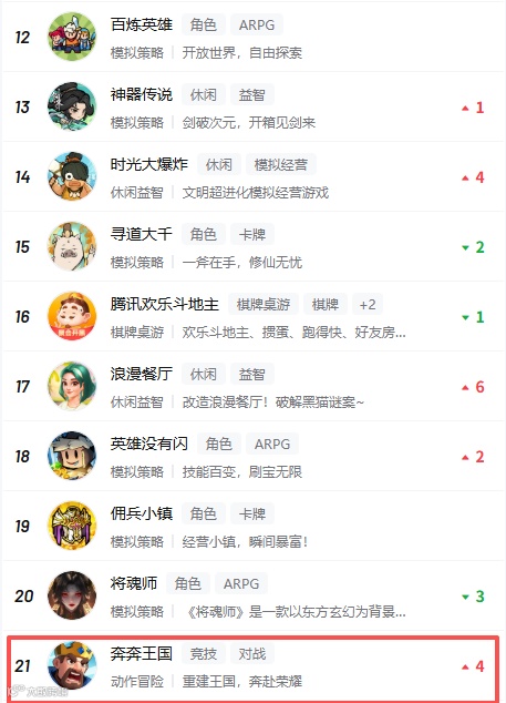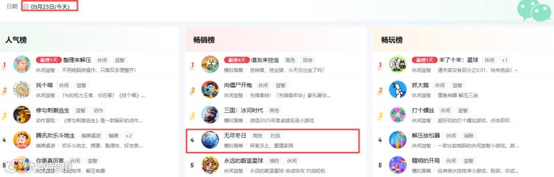 9月23日《奔奔王国》微信小游戏畅销榜排名情况