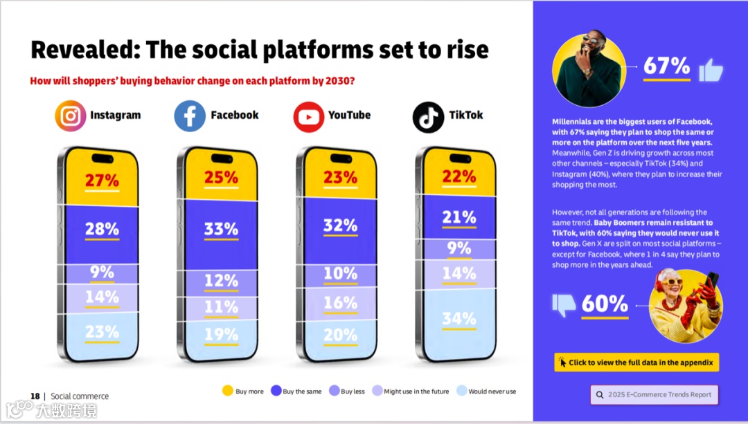 - 预计到2030年,70%消费者将主要通过社交媒体购物;