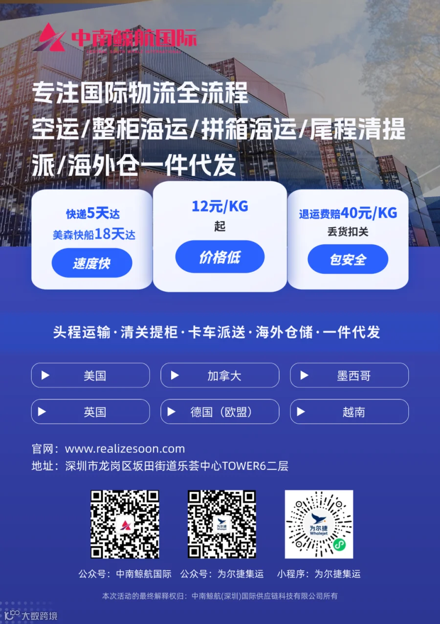 关注我们,持续分享国际贸易、跨境电商和国际物流实用资讯!