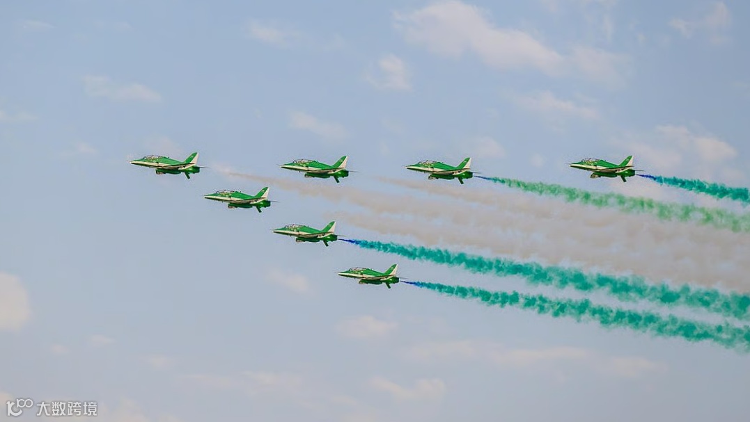 沙特空军举行精彩飞行表演,吉达上空上演震撼航展。烟花秀、游行和传统歌舞演出接连登场,家庭纷纷走出家门共庆佳节。