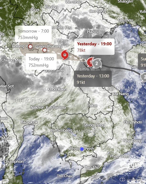 - 中部地区(万象、波利坎赛、甘蒙、沙湾拿吉):普遍中度雷暴,局部大到暴雨,气温22–33℃
