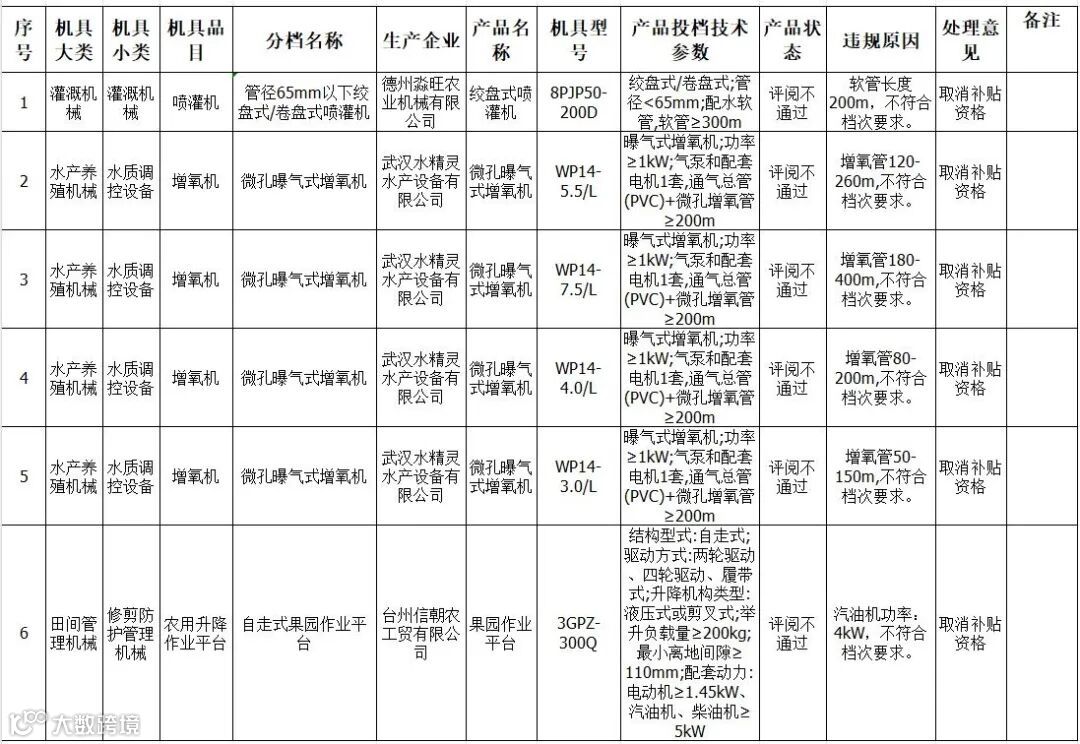(一)自2025年7月18日起,取消山东鲁德隆公司3TGQ-4.5N型号田园管理机在陕西省的补贴资格;自2025年7月8日起,取消任丘喜神公司2BYXF-4型号播种机的补贴资格。上述产品在被取消资格前已购置且经核查无问题的,可按规定兑付补贴资金;已录入但不符合规定的申请予以作废;已兑付的违规资金由企业退缴至县级财政。