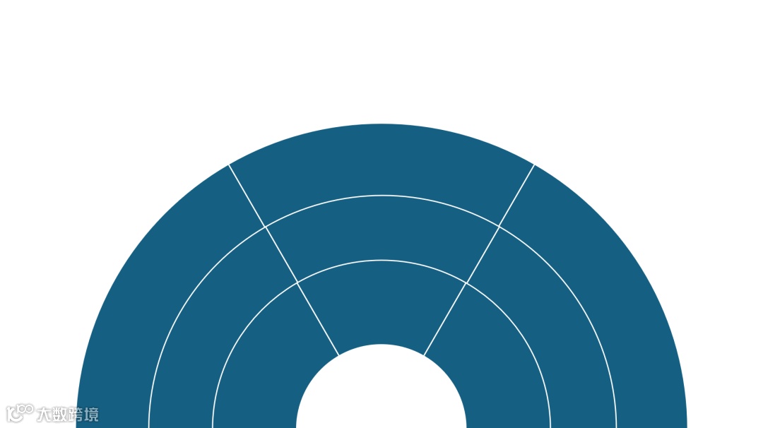 将饼图六等分后放大,取一半置于页面底部,再复制并等比缩小叠加。