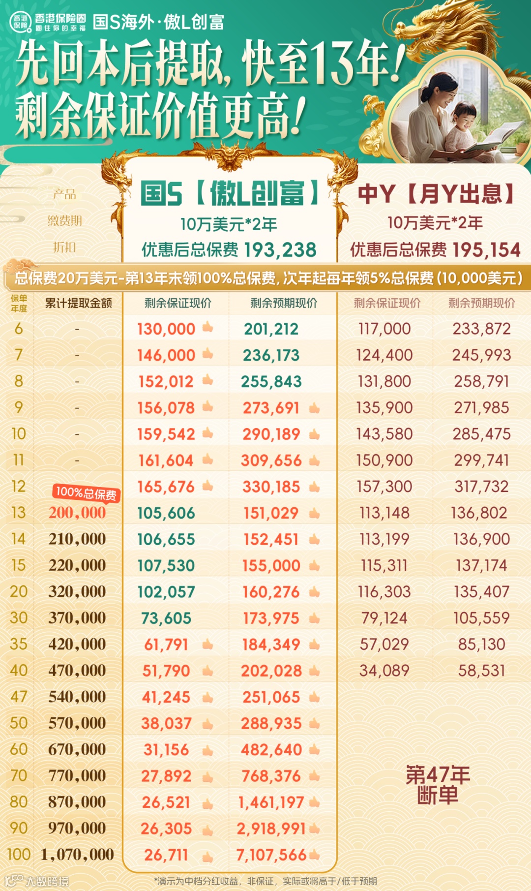 中国人寿海外旗舰产品「傲珑创富」凭借独特的“美式分红”机制和“255真提取”策略,在竞争激烈的香港保险市场脱颖而出。尤其在监管即将实施6.5%收益率上限的背景下,该产品现金价值持续攀升,成为投资者追捧的稀缺选择。