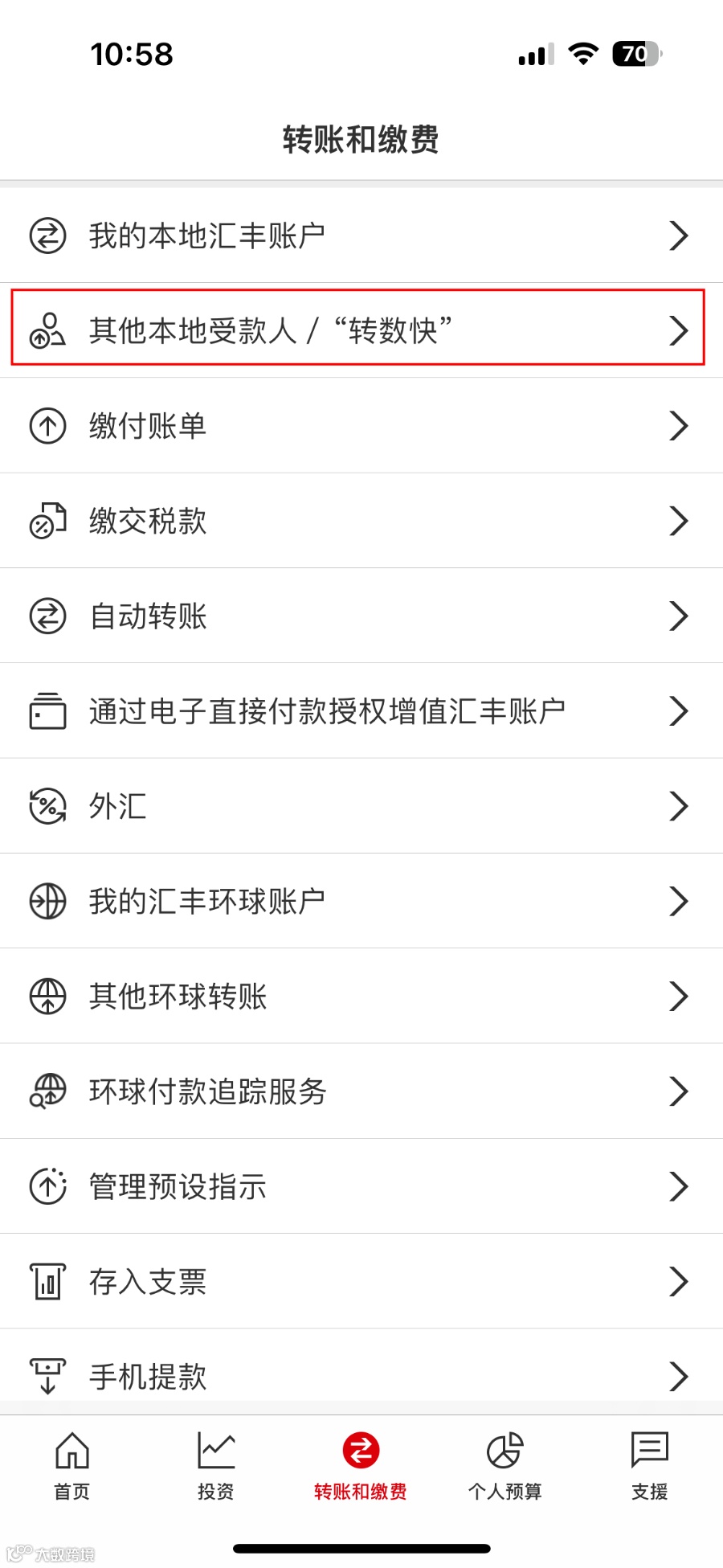 - 进入「转账和缴费」→「其他本地受款人/转数快」→ 填写受款人银行信息