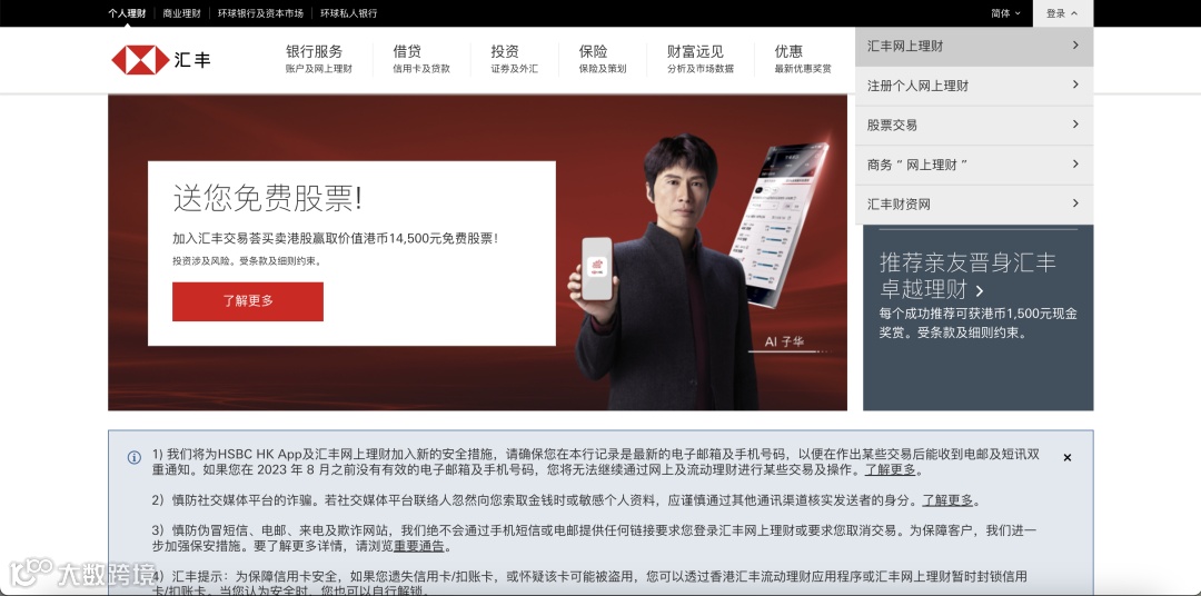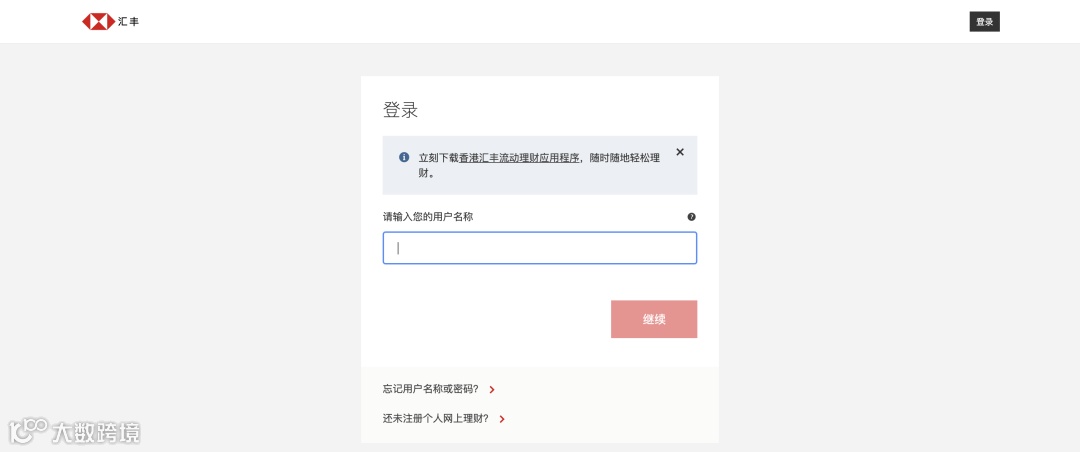 - 点击【登录汇丰网上理财】