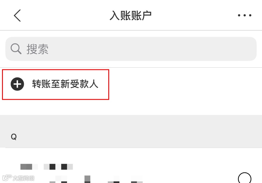 - 点击「付款至新商户」,搜索所属保险公司名称,输入保单号作为账户号码