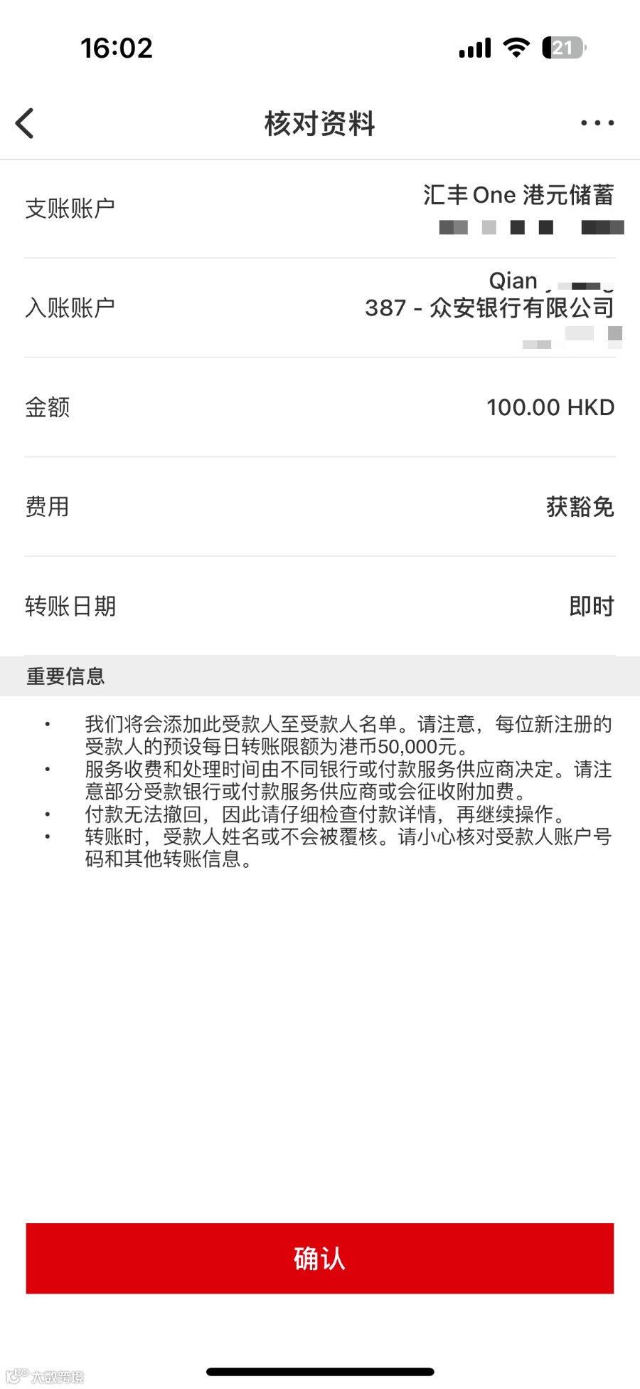 - 核对无误 → 完成转账