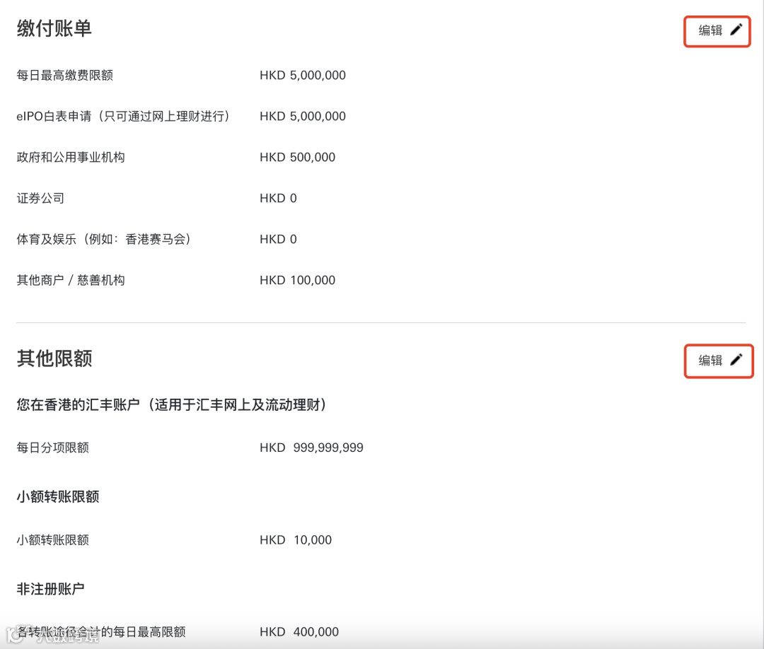 - 仅可在网页端进行限额设置,路径为【快捷链接】→【翻页】→【付款和转账限额】