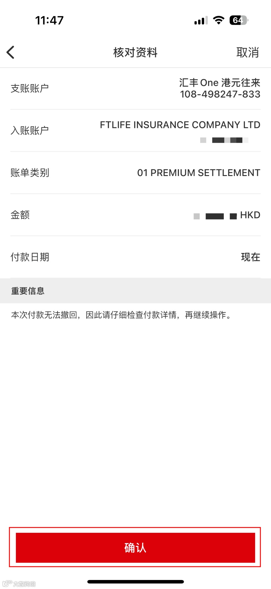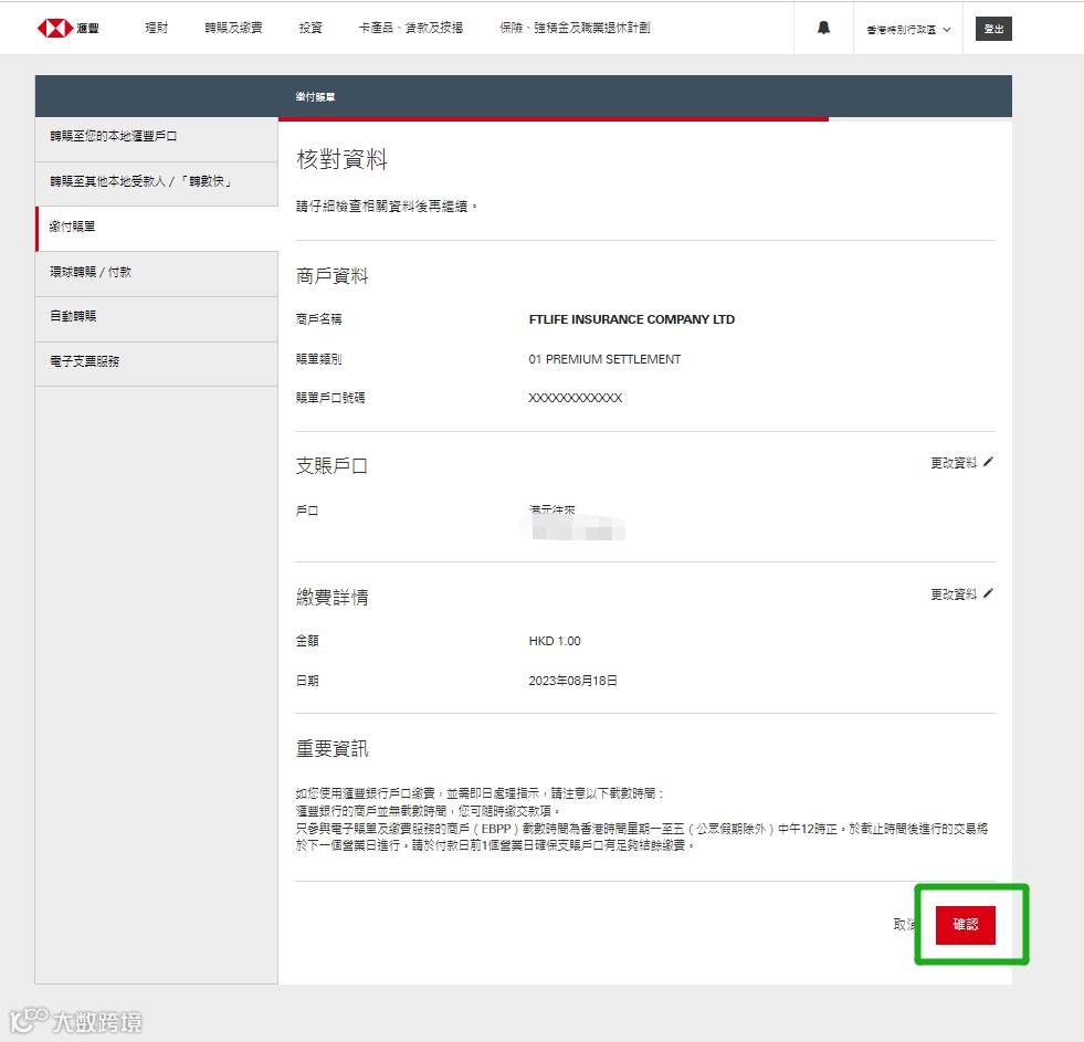 香港汇丰银行转账及保费缴纳操作指南
