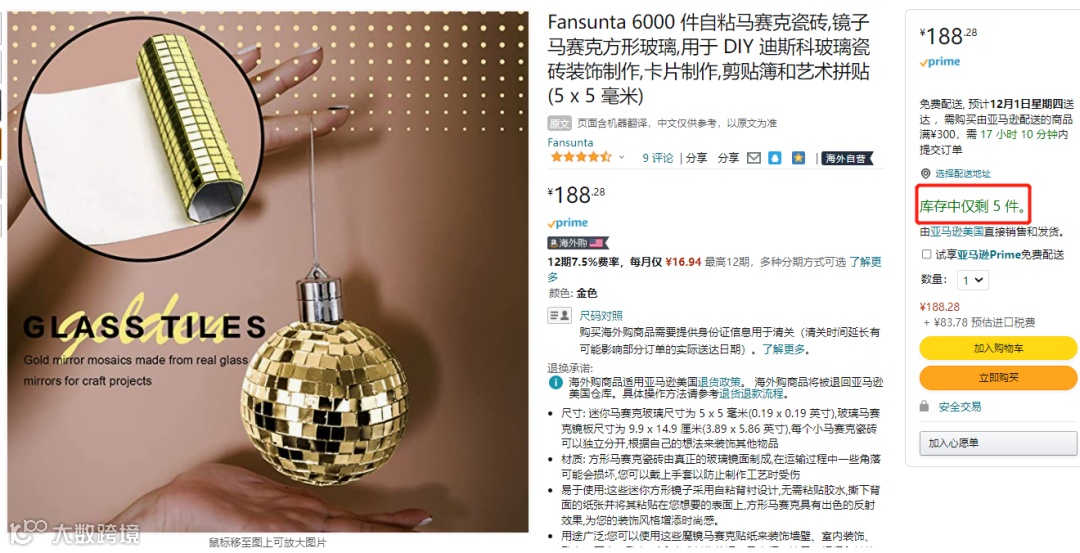 随着社交平台关于迪斯科镜面砖和迪斯科球的“种草”越来越多,亚马逊上相关产品的销量也激增,一些商品几乎要卖断货,并且绝大多数商品的价格都不便宜。从评分较高的一个产品评价区中可以看到,顾客多数购买商品与举办派对有关。