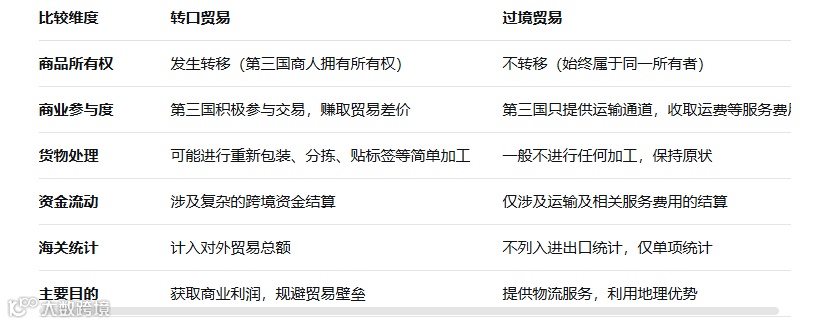 - 货物可不实际入境:理想状态下,货物直运目的地,仅贸易单据经第三国处理。