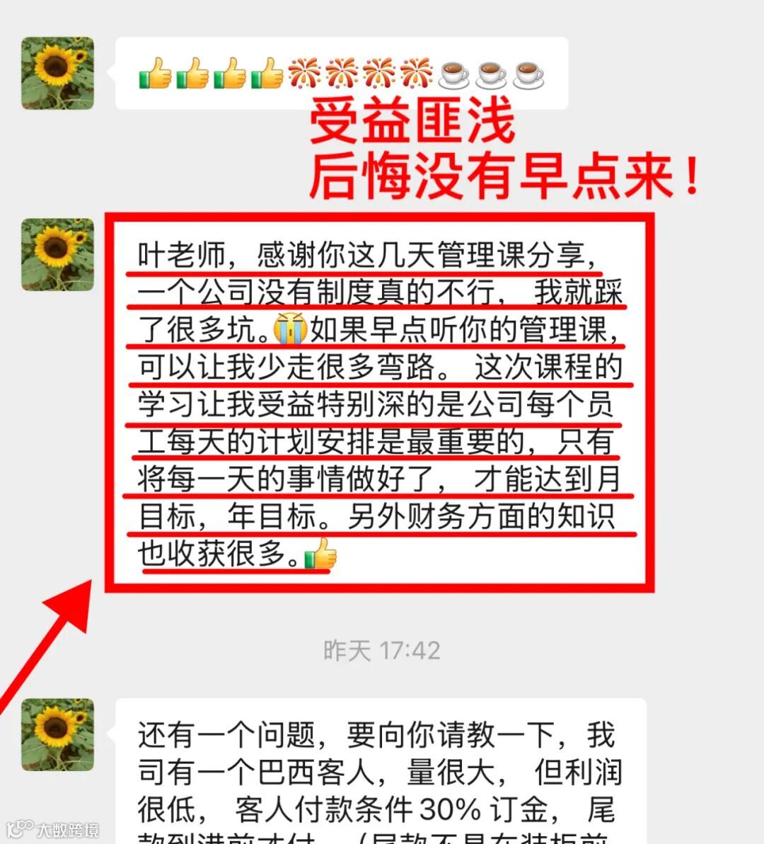 以下精选数十条学员好评,愿为更多外贸人带来启发与信心,助力业绩增长。