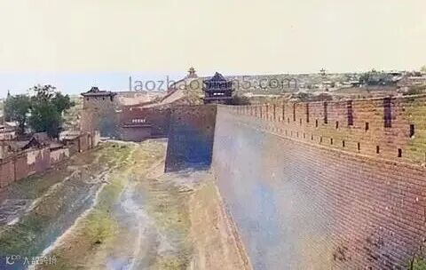 忻州城西南角:拍摄于1942年左右,呈现了古城西南角的城墙实景,墙体厚实坚固,周边为开阔土地,凸显出古城的雄浑与历史厚重感。