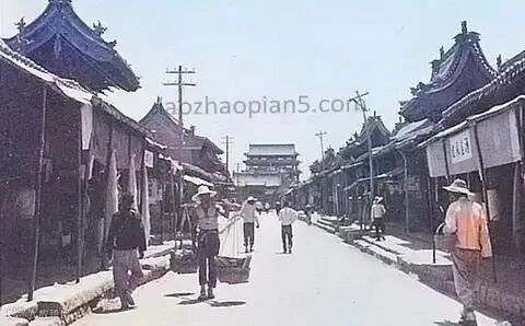 街道两边店铺林立:摄于1942年左右,照片展示了忻州城内一条主要街道,两旁商铺密集,虽处战乱时期,仍可看出一定的商业繁荣迹象。