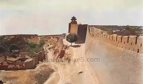 100年前的雁门关:约摄于1915年,照片展现雁门关城墙与城楼,背靠山峦,气势雄伟,作为历代军事要塞,其险要地形一览无余。