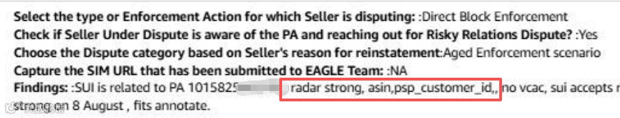 在之前的体检报告中,亚马逊会明确备注导致账户关联的因素是什么,例如:信用卡(CC)、验证手机号(VPH)、地址(Address)、注册资料(siv)。但是,在本次“Radar”关联中,体检报告并没有明确备注关联的具体因素。