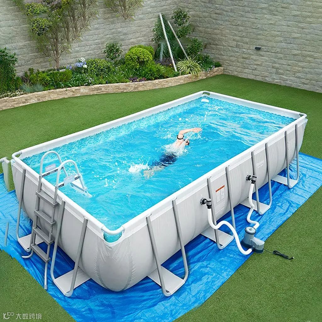 除了充气泳池,还有一种支架泳池在欧美也比较受欢迎,支架泳池主要由膜布和金属支架组成,搭建速度更快,池壁更薄,不易破损变形,使用寿命也比充气泳池长。不过,其价格要比充气泳池更贵,不如充气泳池便于收纳,且对场地要求比较高。