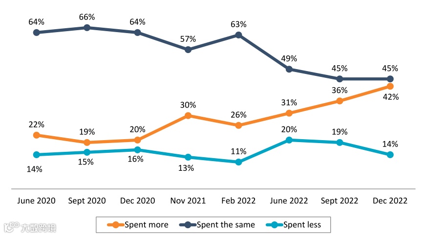 2022年美国通胀情况苦了全球消费者,美国消费者也不例外,在APPA(美国宠物用品协会)的调查中,受访者表示与前一年相比他们在可自由支配物品上的支出减少了60%,57%的消费者花钱会更慎重。