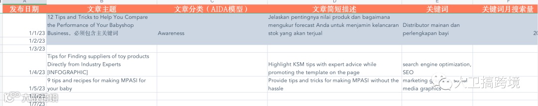 严格按照AIDA模型来确定关键词,文章主题,你是写教程类的文章一定是Awareness模型,供应商比对的文章一定是Decision模型。