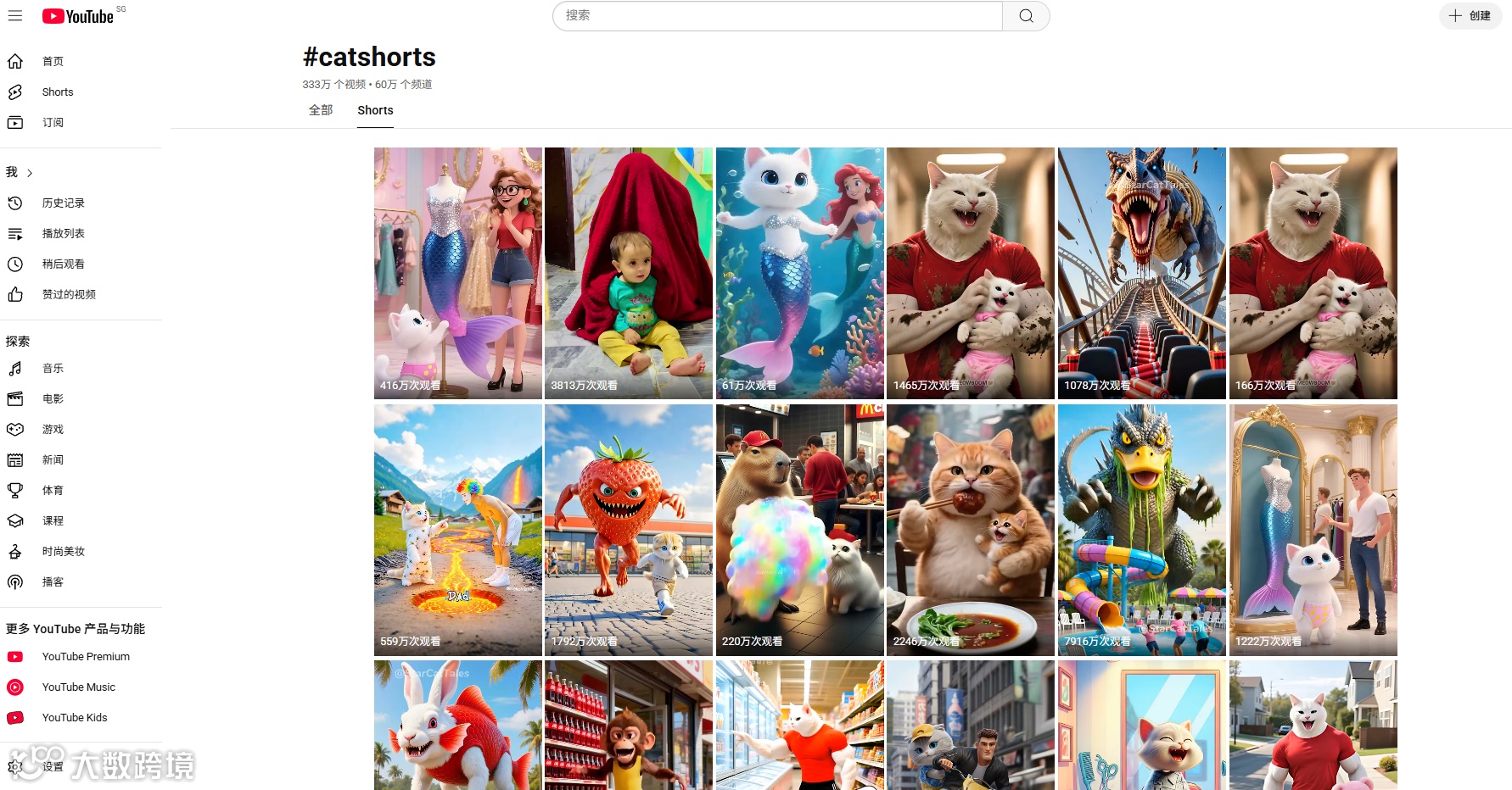 这是目前在 Shorts 上特别有潜力的方向。通过 AI 把猫狗、熊猫、鹦鹉等动物拟人化,结合搞笑配音或日常生活场景,很容易吸引点击和转发。