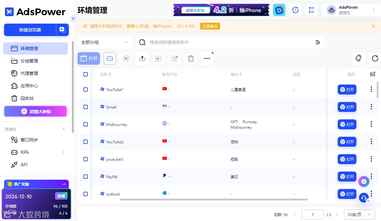 而等你后续复制成功经验、多账号矩阵运营赚更多美金时,AdsPower 这种能安全高效批量管理账号的工具, 还支持团队协作、RPA 自动化、窗口同步等等功能,更会成为不可缺少的运营帮手。