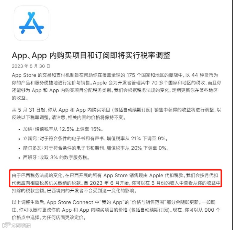 其中尤为引人注意的是,苹果将按照巴西税务机关的要求,对巴西地区所产生的应用内购进行代扣缴。