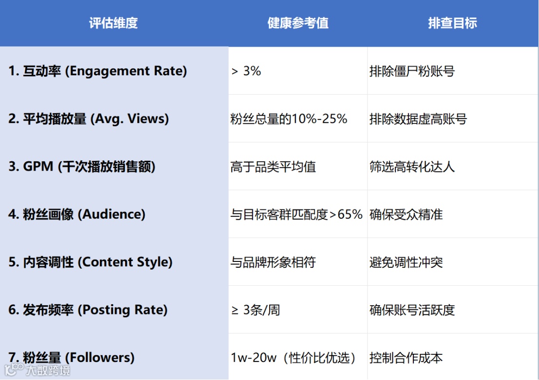 找到达人仅是开始,科学评估是关键,避开“唯粉丝量”误区,重点关注以下7大核心指标: