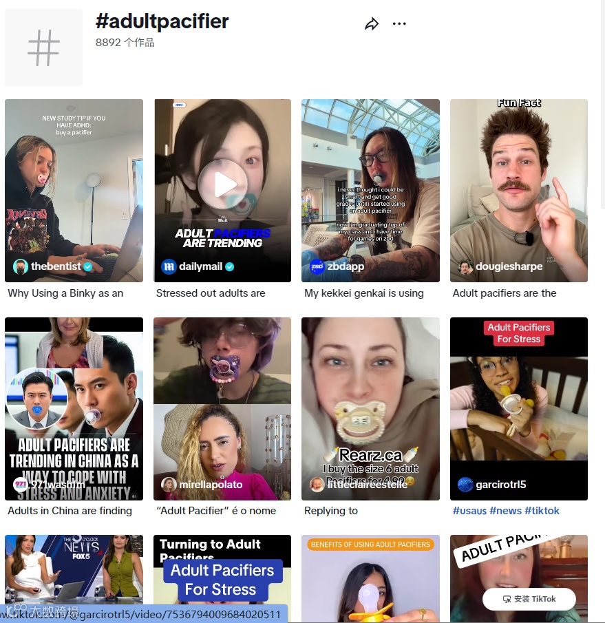 TikTok话题#adultpacifier 播放量激增,形成"减压文化"传播闭环