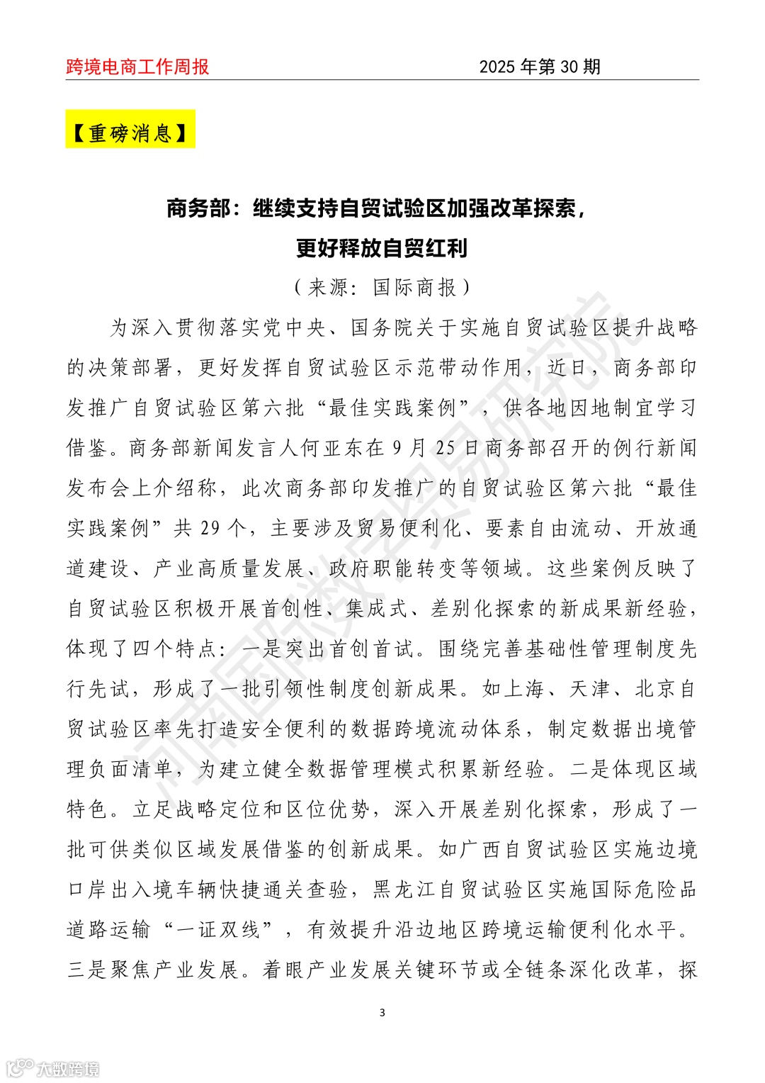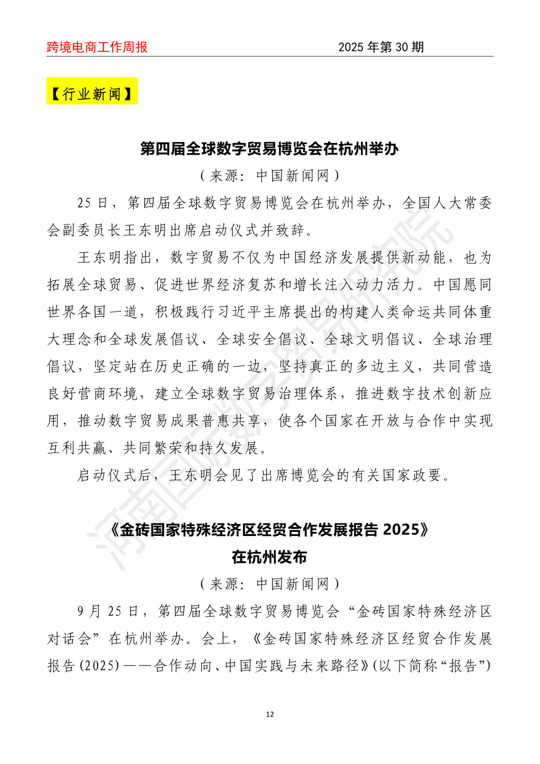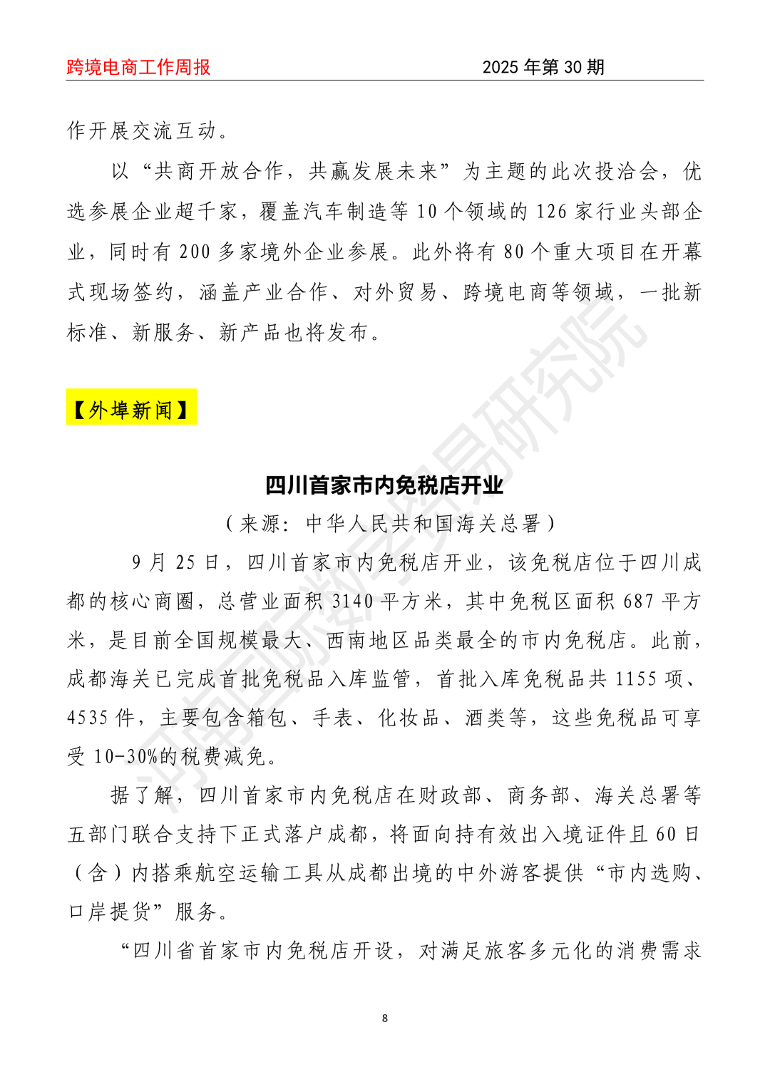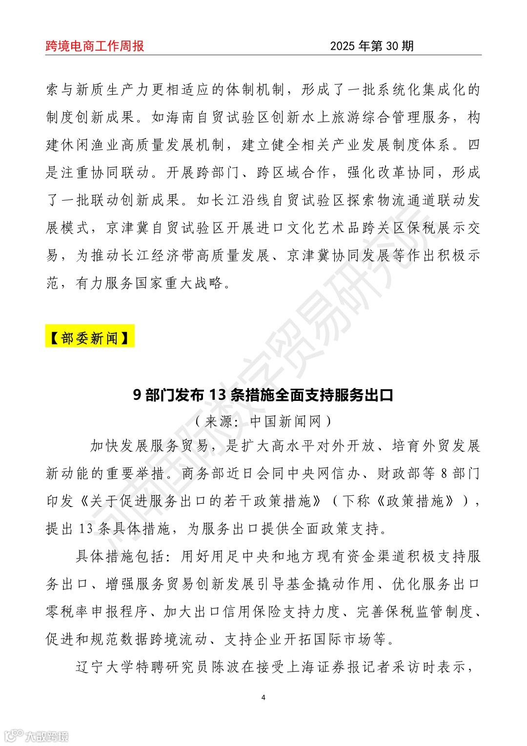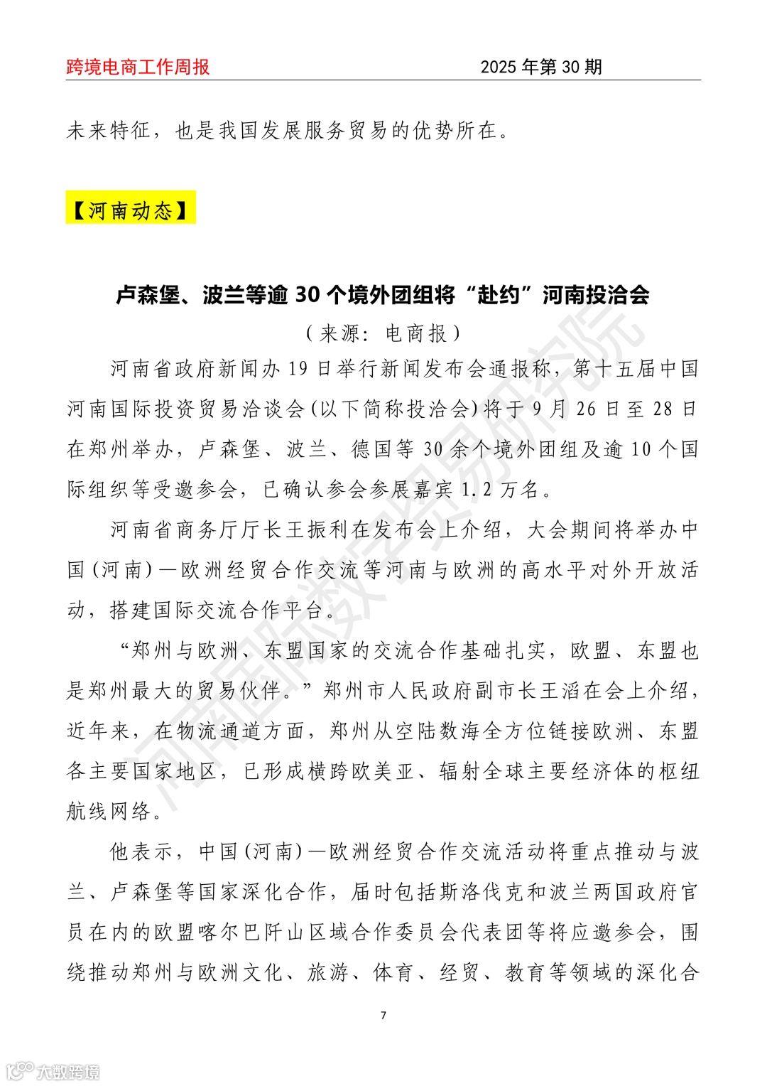 2025年第30期(2025/09/20—2025/09/26),跨境电商领域又发生了哪些事件,以下是河南国际数字贸易研究院为大家带来的本周外贸进出口、跨境电商平台、服务商及各地跨境电商最新动态回顾。