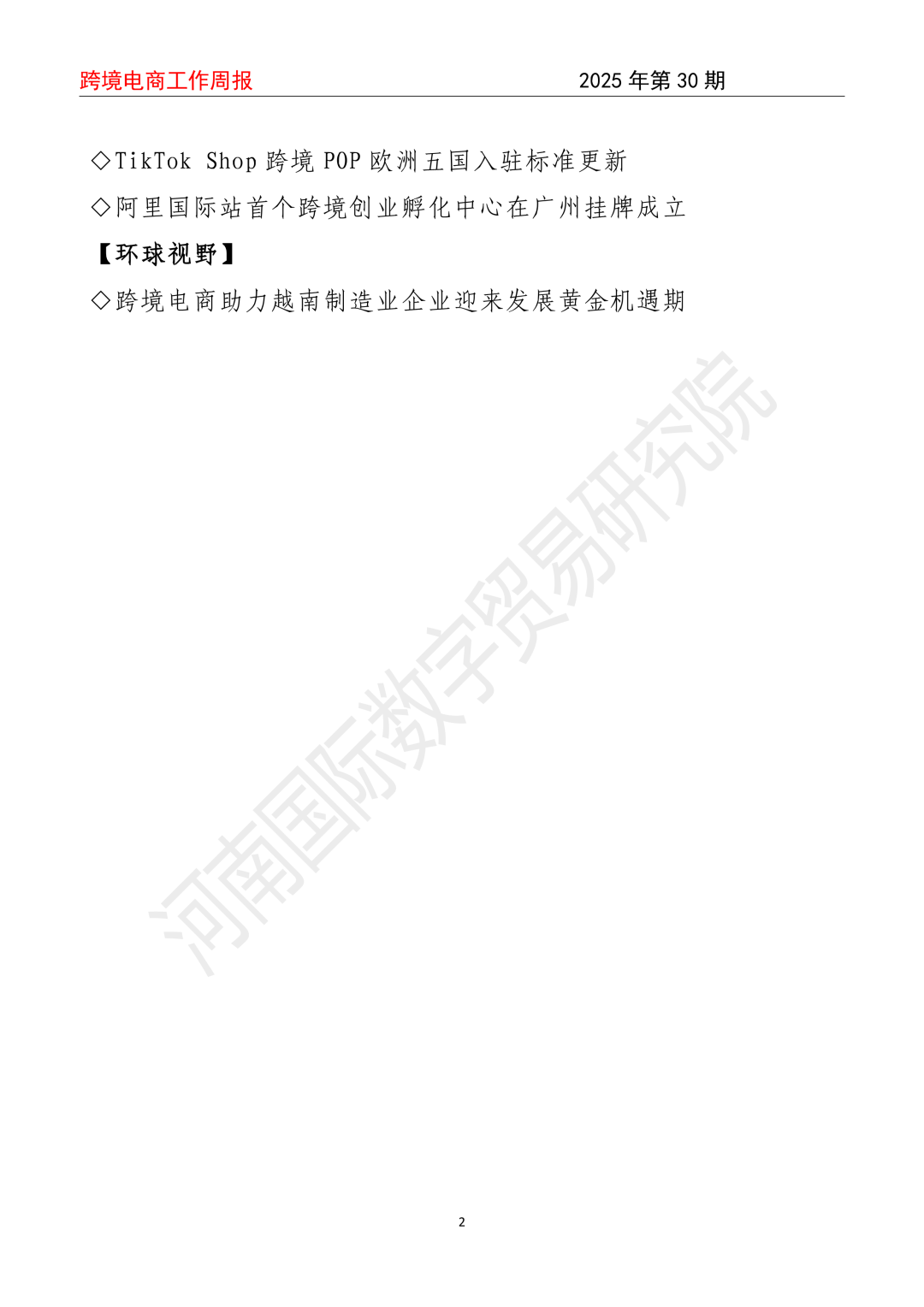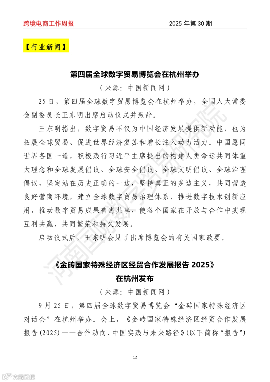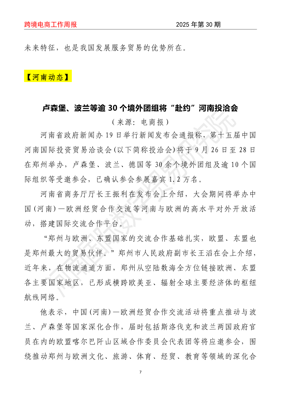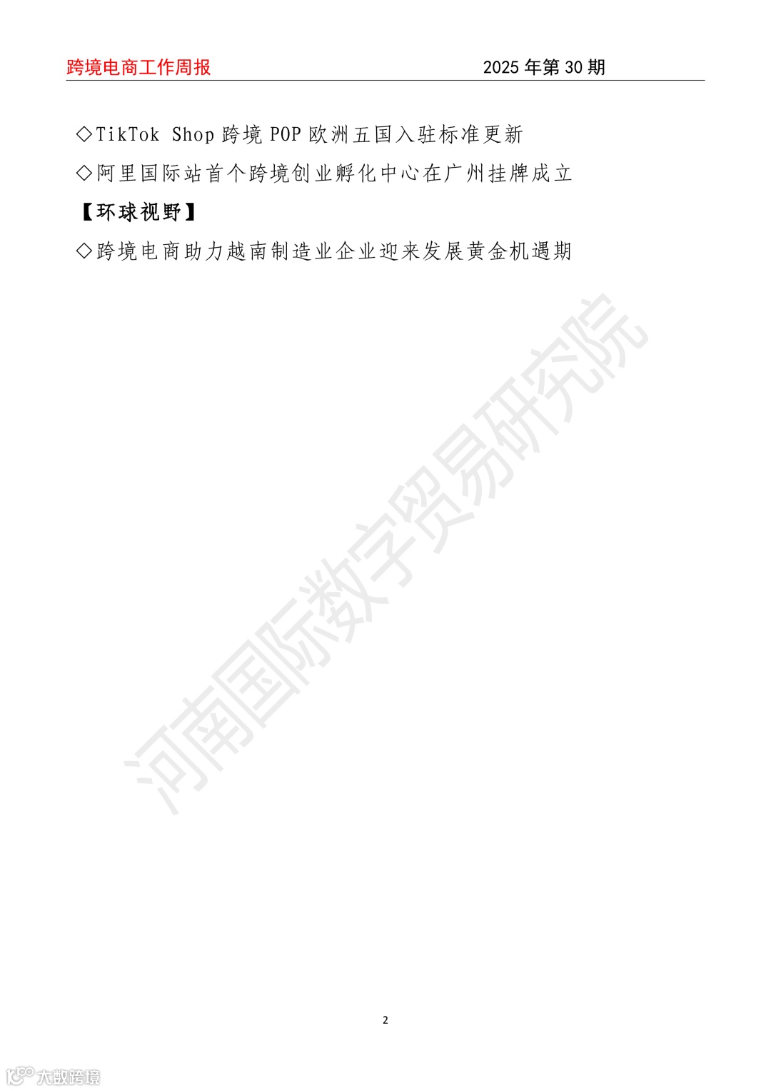 2025年第30期(2025/09/20—2025/09/26),跨境电商领域又发生了哪些事件,以下是河南国际数字贸易研究院为大家带来的本周外贸进出口、跨境电商平台、服务商及各地跨境电商最新动态回顾。