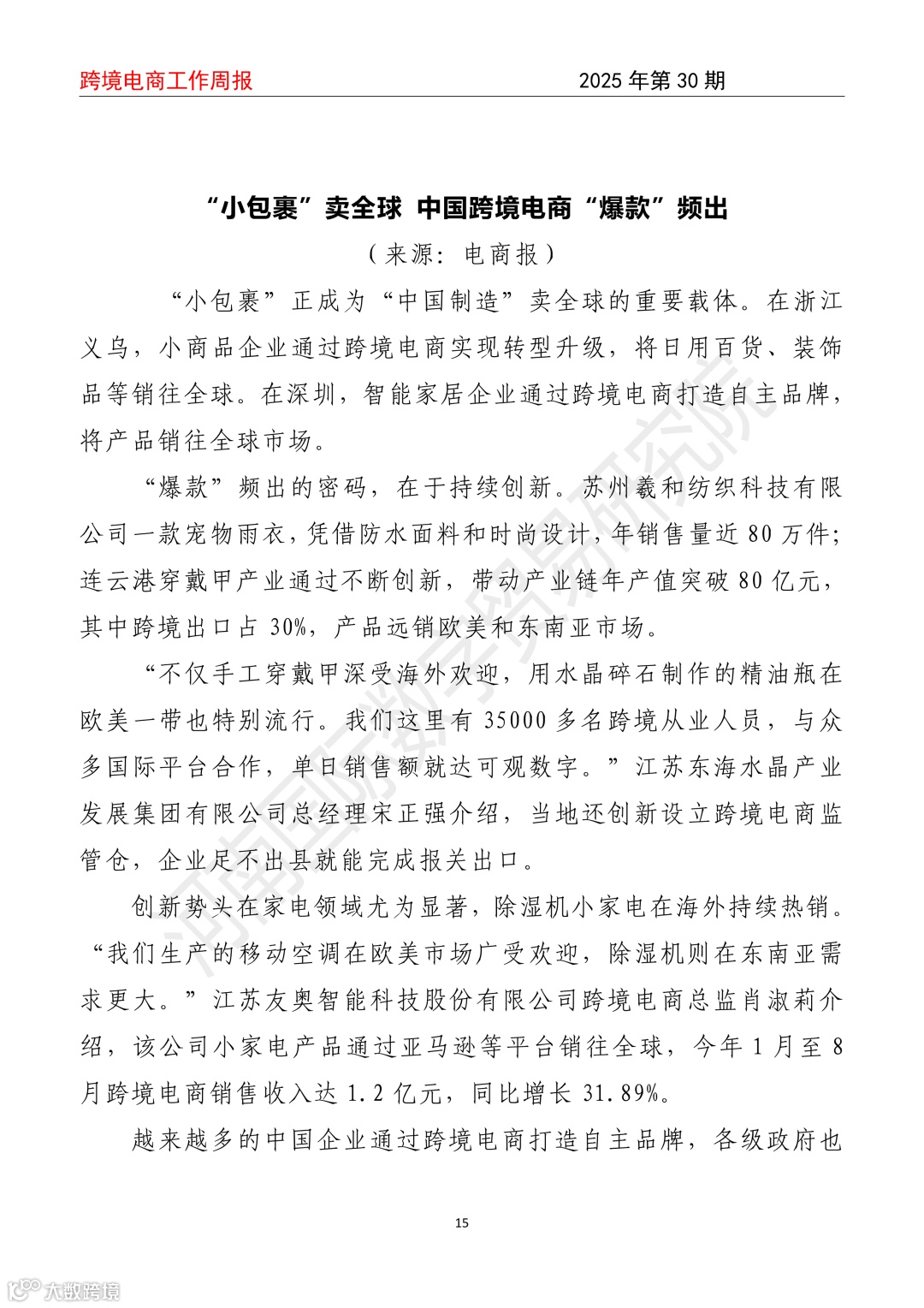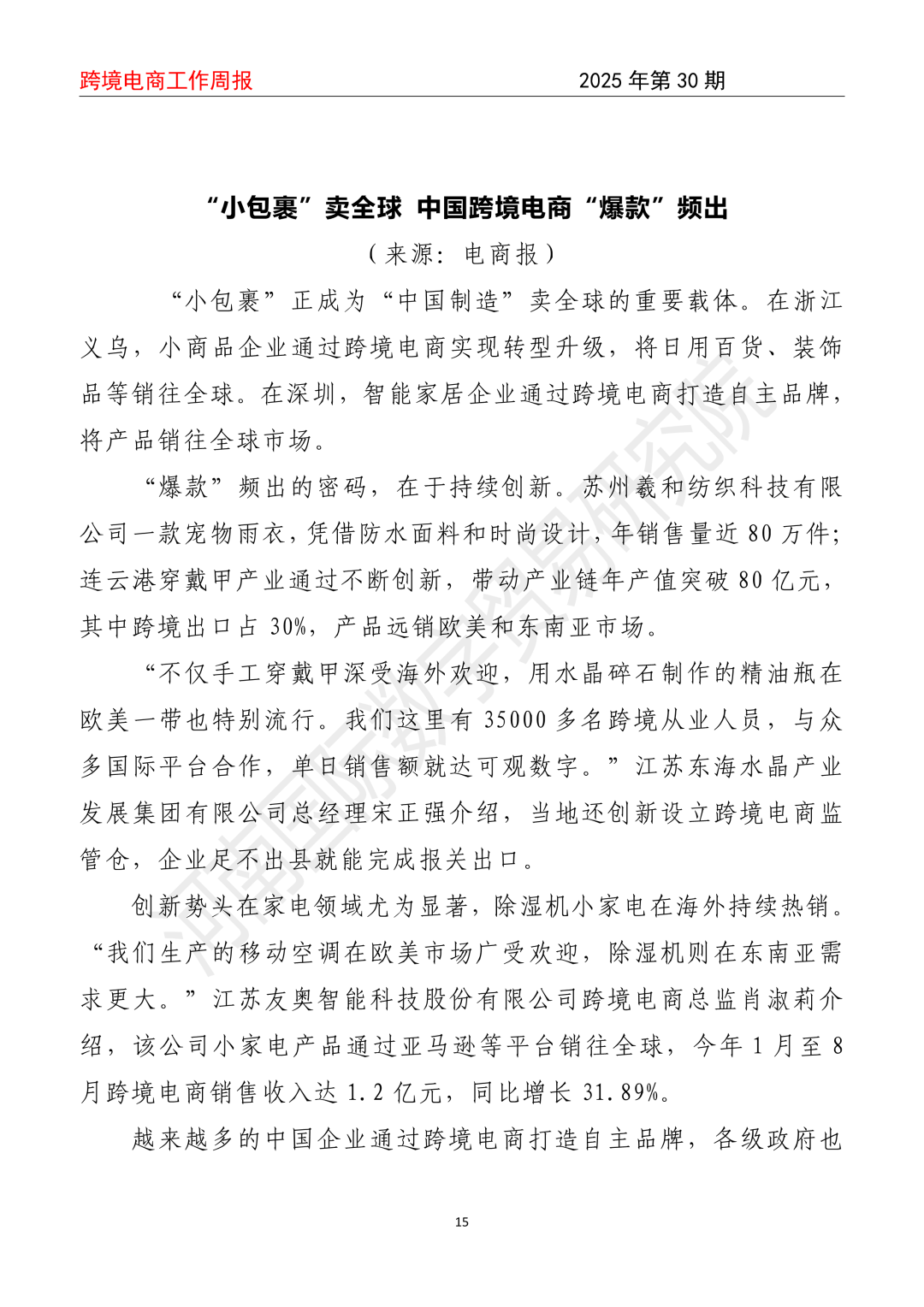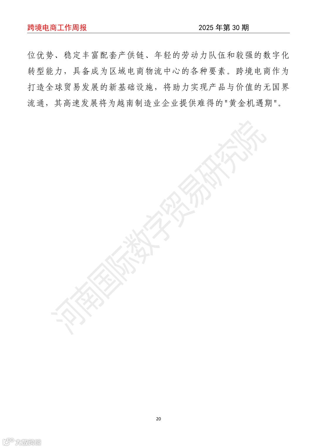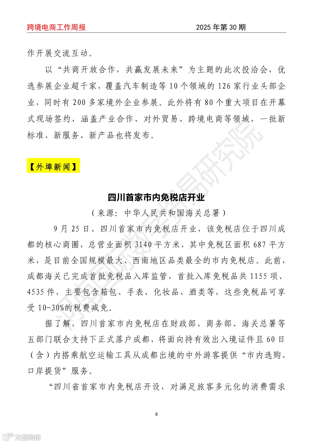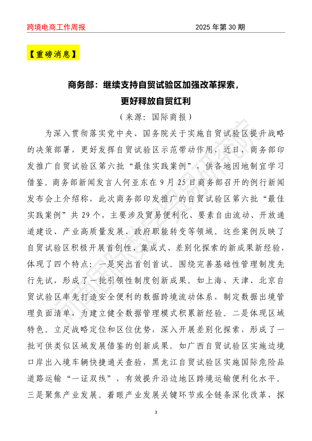 2025年第30期(2025/09/20—2025/09/26),跨境电商领域又发生了哪些事件,以下是河南国际数字贸易研究院为大家带来的本周外贸进出口、跨境电商平台、服务商及各地跨境电商最新动态回顾。